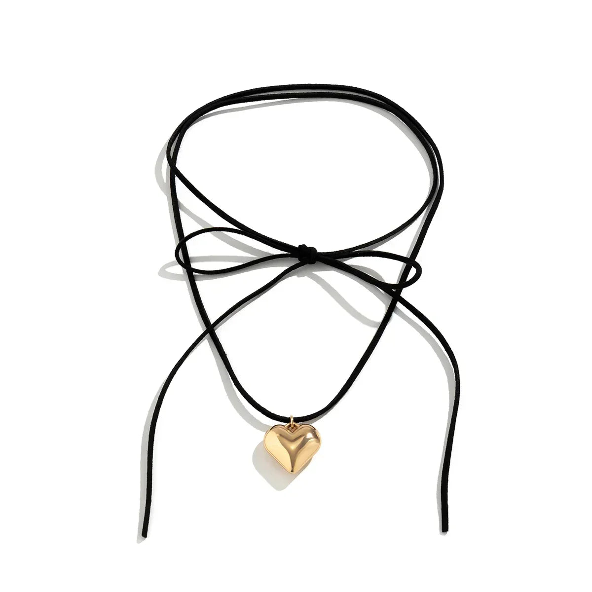 plus Personalized Adjustable Wax Line Choker Necklace for Women Simple Creative Love Heart Pendant Necklace Y2K Jewelry Accessories