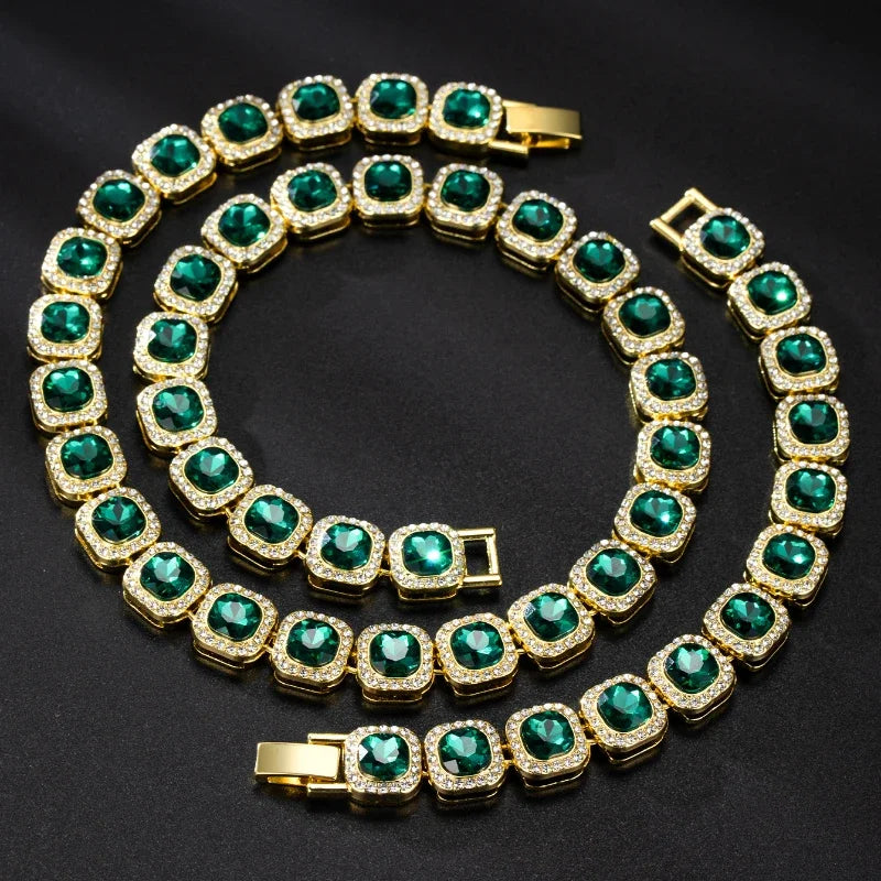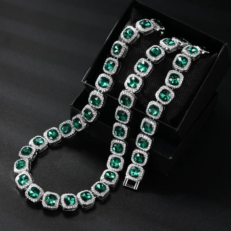 12mm Green sugar Hip Hop Shiny Cuban Link Chain Necklace Women Men Silver Color Rhinestone Iced Out Cuban Chain Punk Jewelry