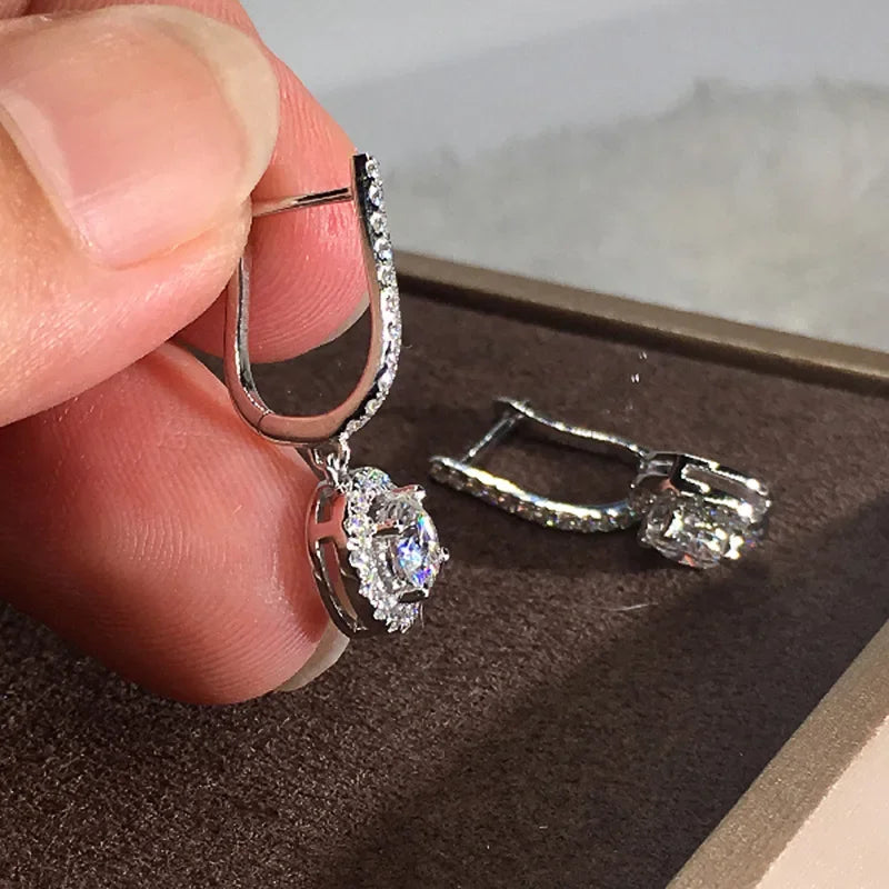 2023 Versatile Classic Design Round Dangle Earrings For Women Dazzling Crystal CZ Engagement Wedding Jewelry Statement Earring