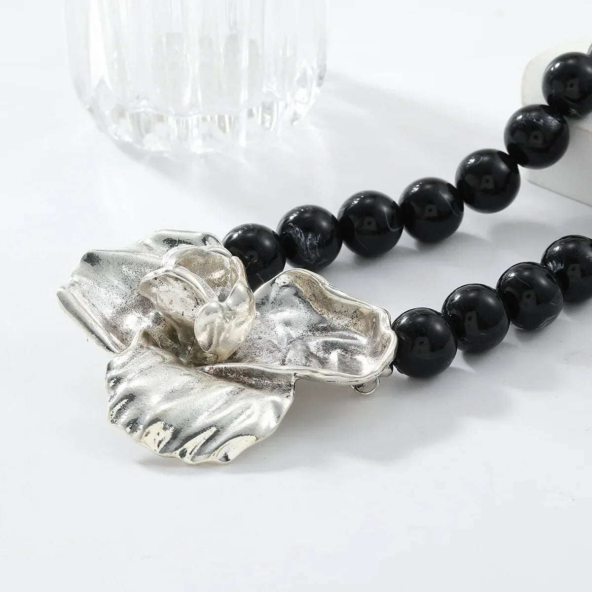 minus Fashion Metal Large Flower Resin Beads Choker Necklace for Women Personality Gold Color Rose Beaded Necklace 2024 Jewelry