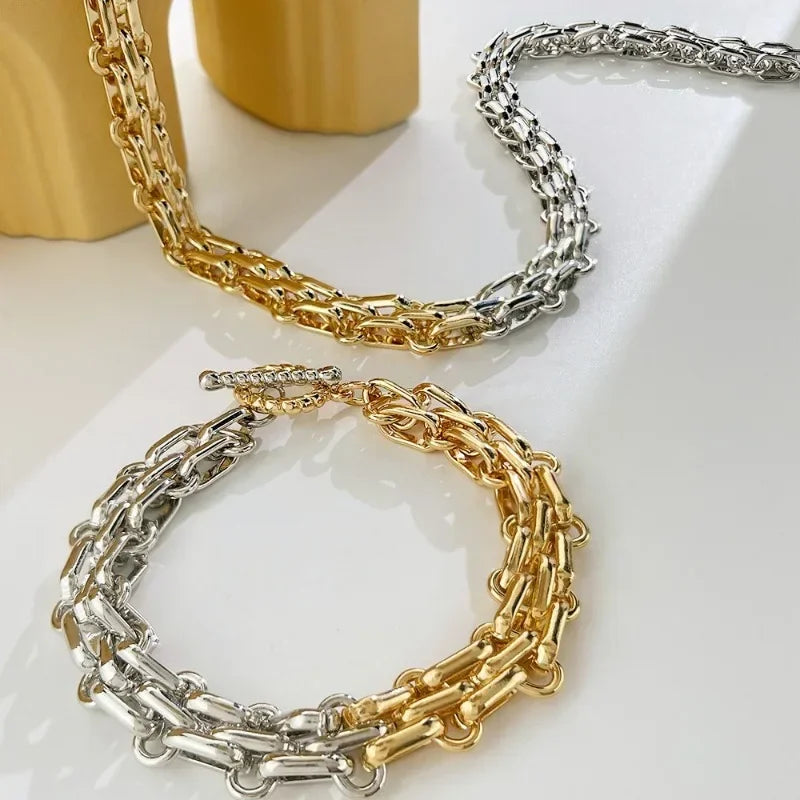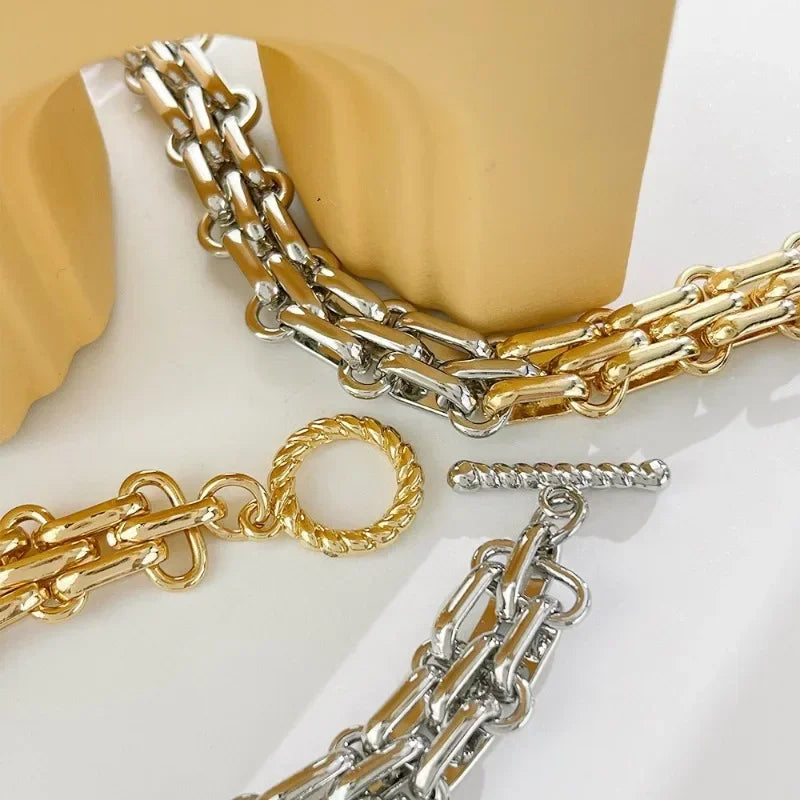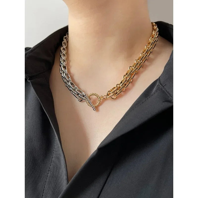 Gold Mixed Silver Color Necklace for Women Asymmetric Chain Choker Chunky Stainless Steel Chain Link Valentines Jewelry Gift