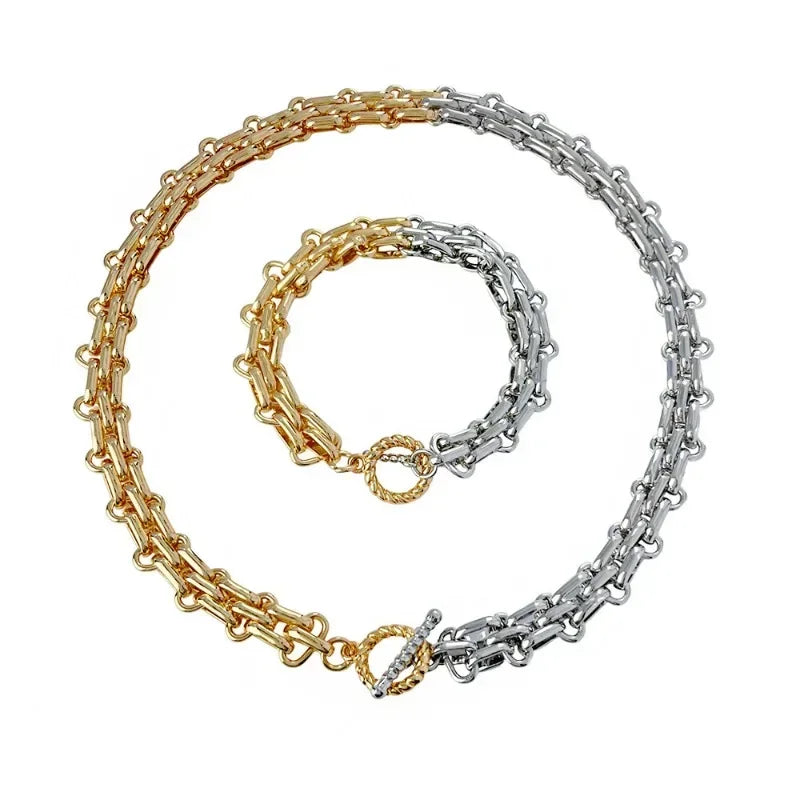 plus Gold Mixed Silver Color Necklace for Women Asymmetric Chain Choker Chunky Stainless Steel Chain Link Valentines Jewelry Gift