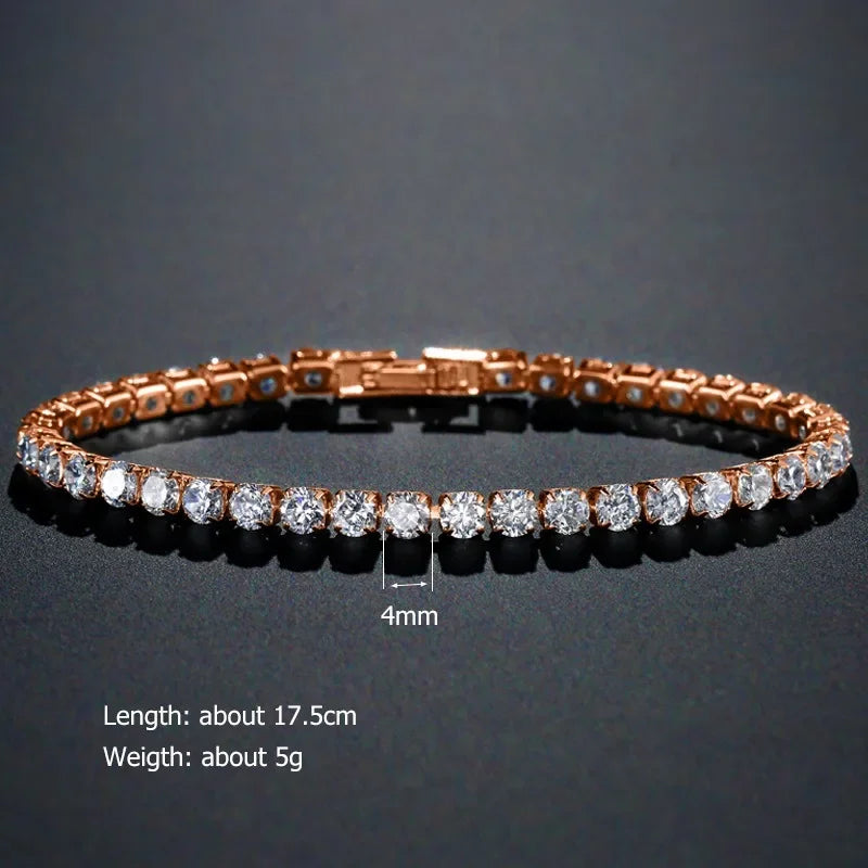 Luxury Hiphop 4mm Cubic Zirconia Crystal Tennis Bracelets For Women Men Gold Color Silver Color Bracelet Chain Jewelry