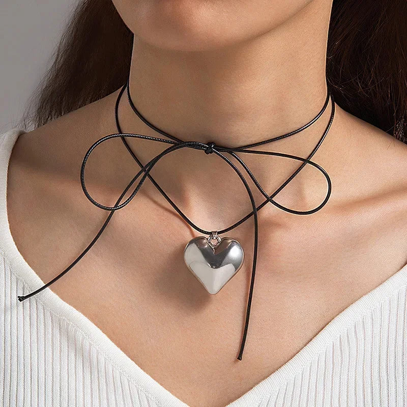 Personalized Adjustable Wax Line Choker Necklace for Women Simple Creative Love Heart Pendant Necklace Y2K Jewelry Accessories