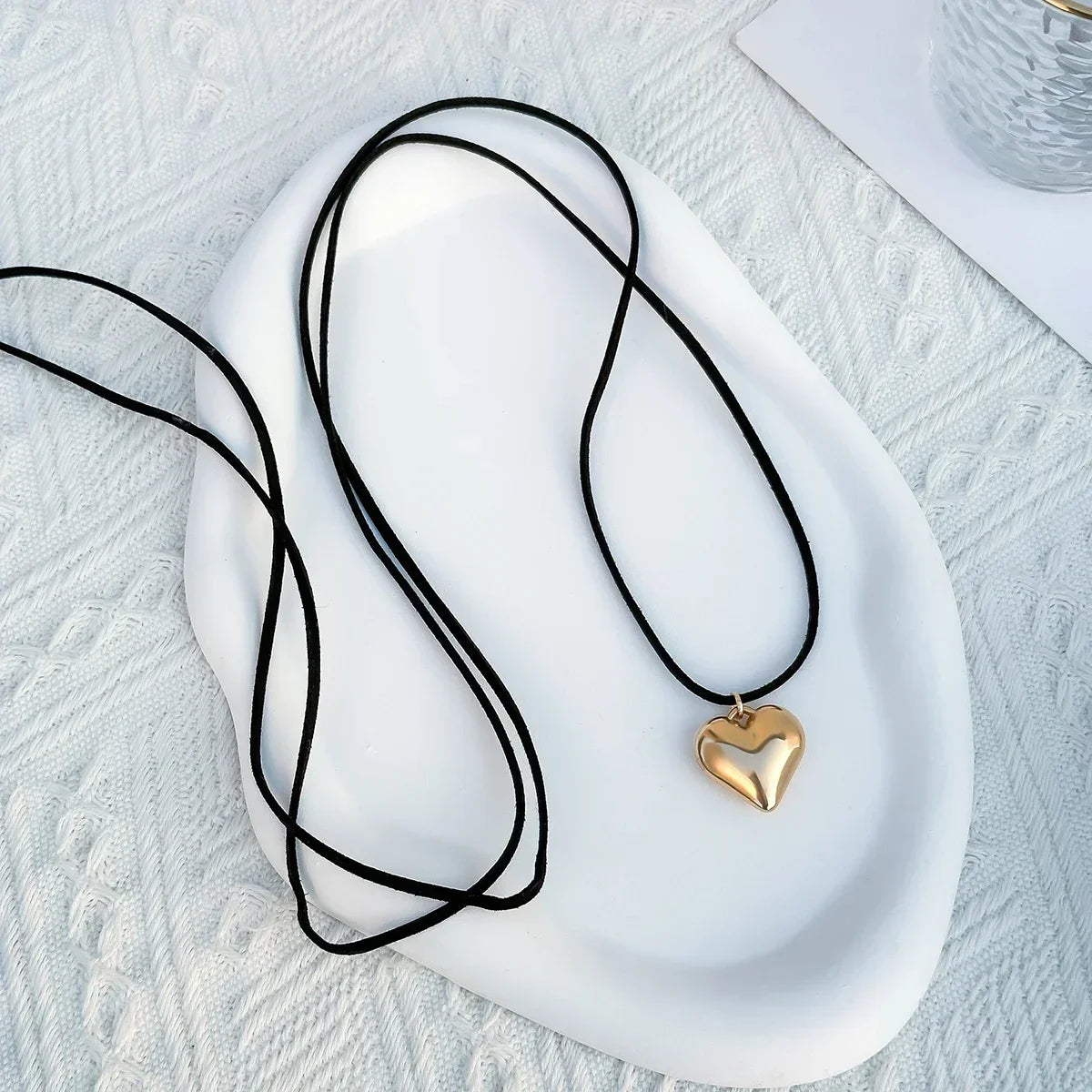 plus Personalized Adjustable Wax Line Choker Necklace for Women Simple Creative Love Heart Pendant Necklace Y2K Jewelry Accessories